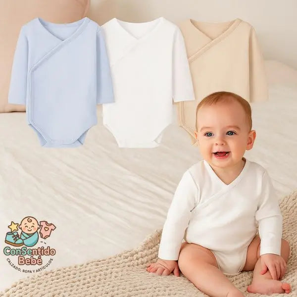 Pack de 3 Bodys Cruzados en 100% Algodón Pima